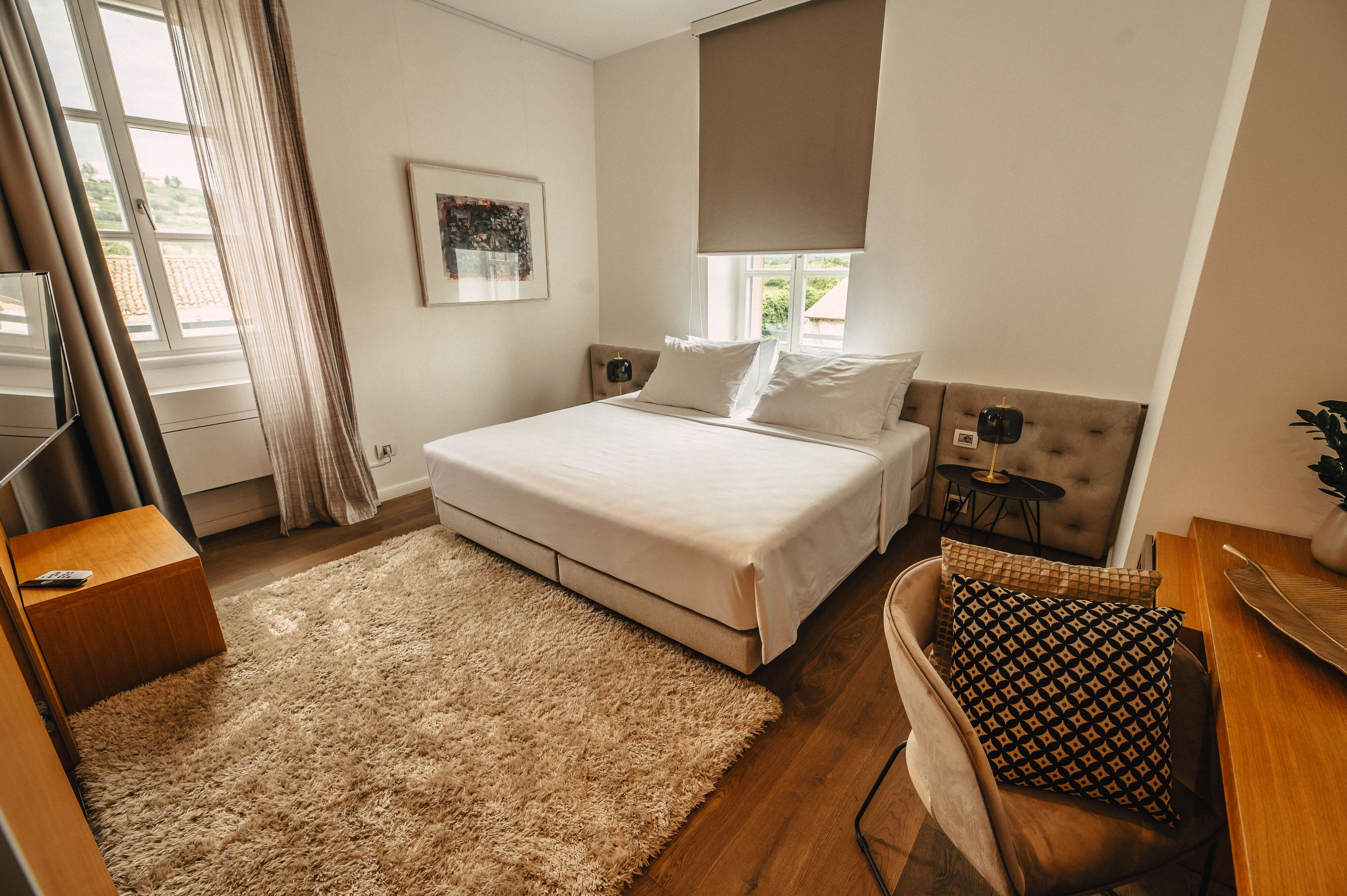 L'hotel Gredič offre quattro camere e tre suite, tutte arredate diversamente, caratterizzate da una piacevole combinazione di materiali naturali, tradizione ed eleganza. I nostri ospiti possono godere del comfort e del calore delle camere anche nel resto degli ambienti, come nell’angolo del camino, al ristorante e sulla terrazza a bordo piscina, dove la magnifica vista sui vigneti diffonde all’ambiente un atmosfera piacevole e di relax in tutte le stagioni dell’anno.